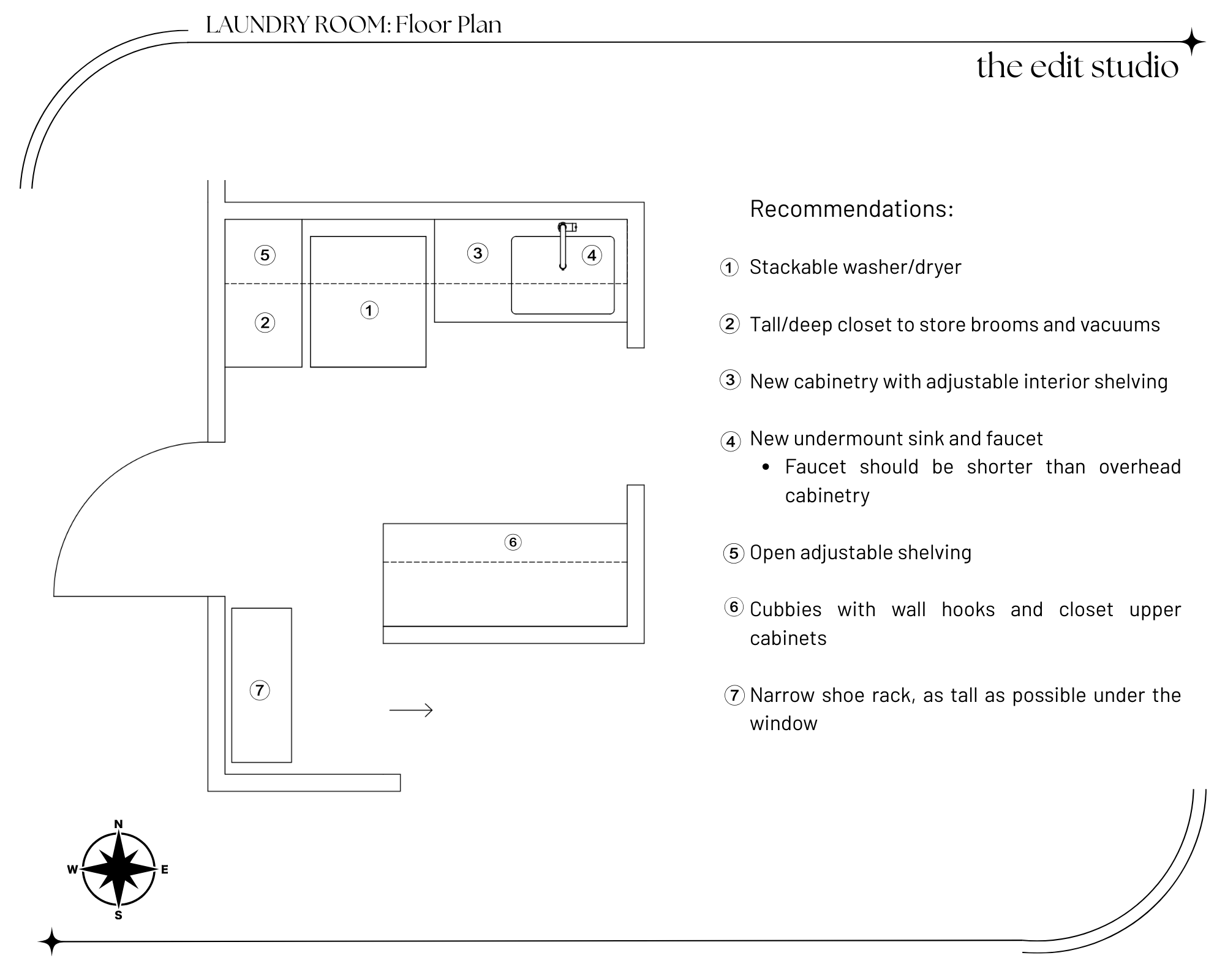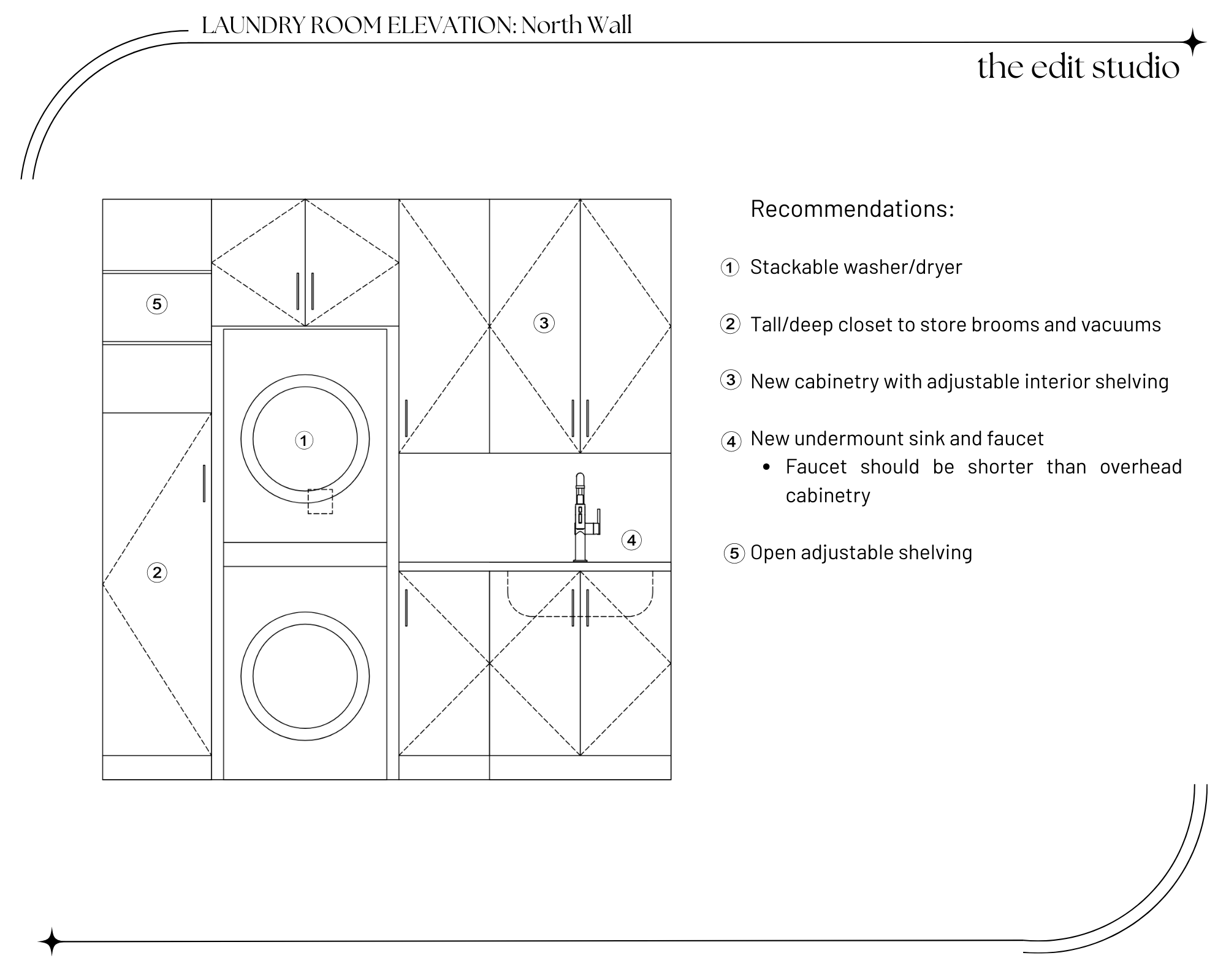 This project updated the laundry room to accommodate a stacked washer and dryer, creating space for new, more efficient cabinetry and improved storage. We also introduced an eat-in kitchen area and a custom storage wall to handle kitchen overflow, keeping the space organized, functional, and streamlined for everyday living.